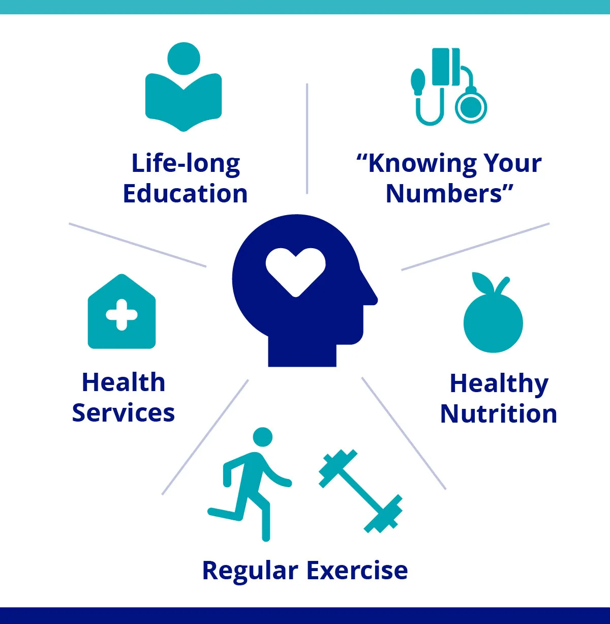 - “Knowing your numbers,” or being able to monitor levels of blood glucose, body mass index, blood pressure, and lipids