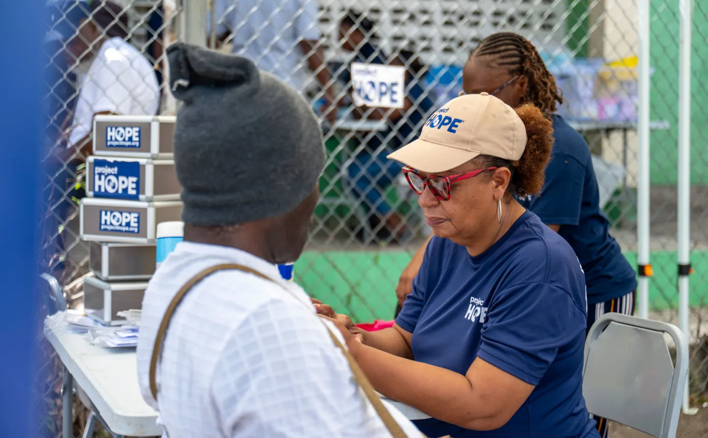 “A lot of individuals have experienced a lot of loss,” says Dr. Andre Carr, a Jamaican physician working with Project HOPE. “And to actually even just talk to a physician… was a healing hand to them.”