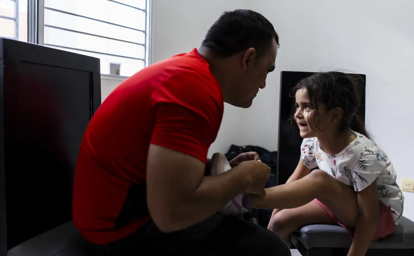Dr. Jennifer Guzmán provides care for Ithan*, a young boy from Venezuela. Most of her patients, she says, have never seen a doctor. Photo by Charlie Cordero for Project HOPE, 2025.