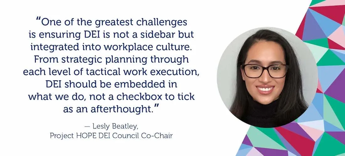 Being able to expand and grow into a leadership role within the DEI Council has been truly rewarding. So has learning from one another, all working toward the same mission and the same goal in mind: to make Project HOPE an even more welcoming, inclusive, and diverse workplace.